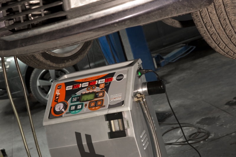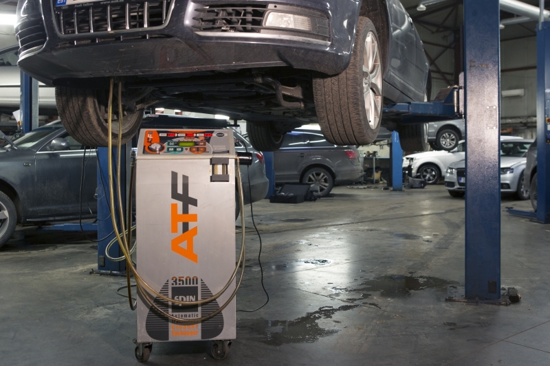 - Neljandana täidetakse käigukast seadme vahendusel uue automaatkäigukasti õliga. Seade kontrollib täpselt sisestatava õli koguse ja täidab enne auto käivitamist täielikult kõik automaatkäigukasti õlikanalid. Seejärel toimub käigukasti töö kontroll.